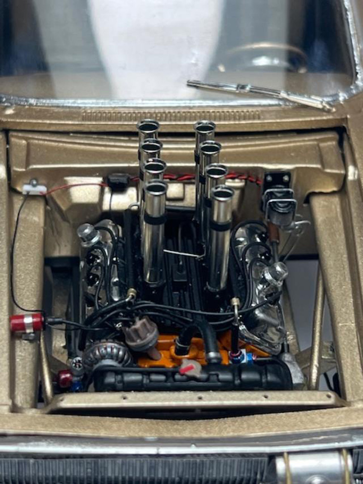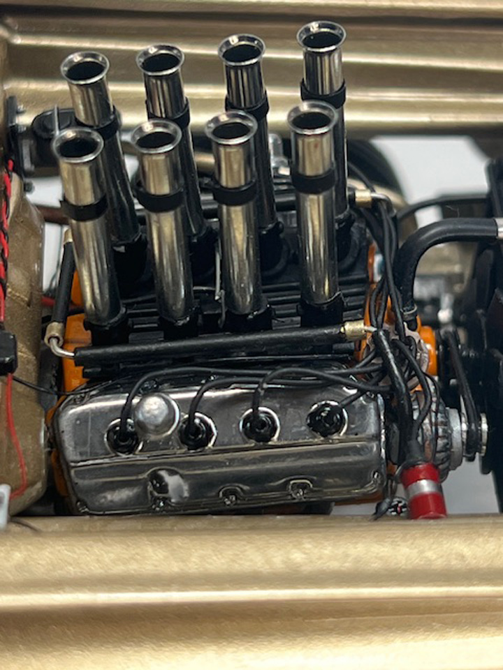 Stacks are shown on a Revell Tommy Ivo "Showboat" Dragster Nail Head Engine.