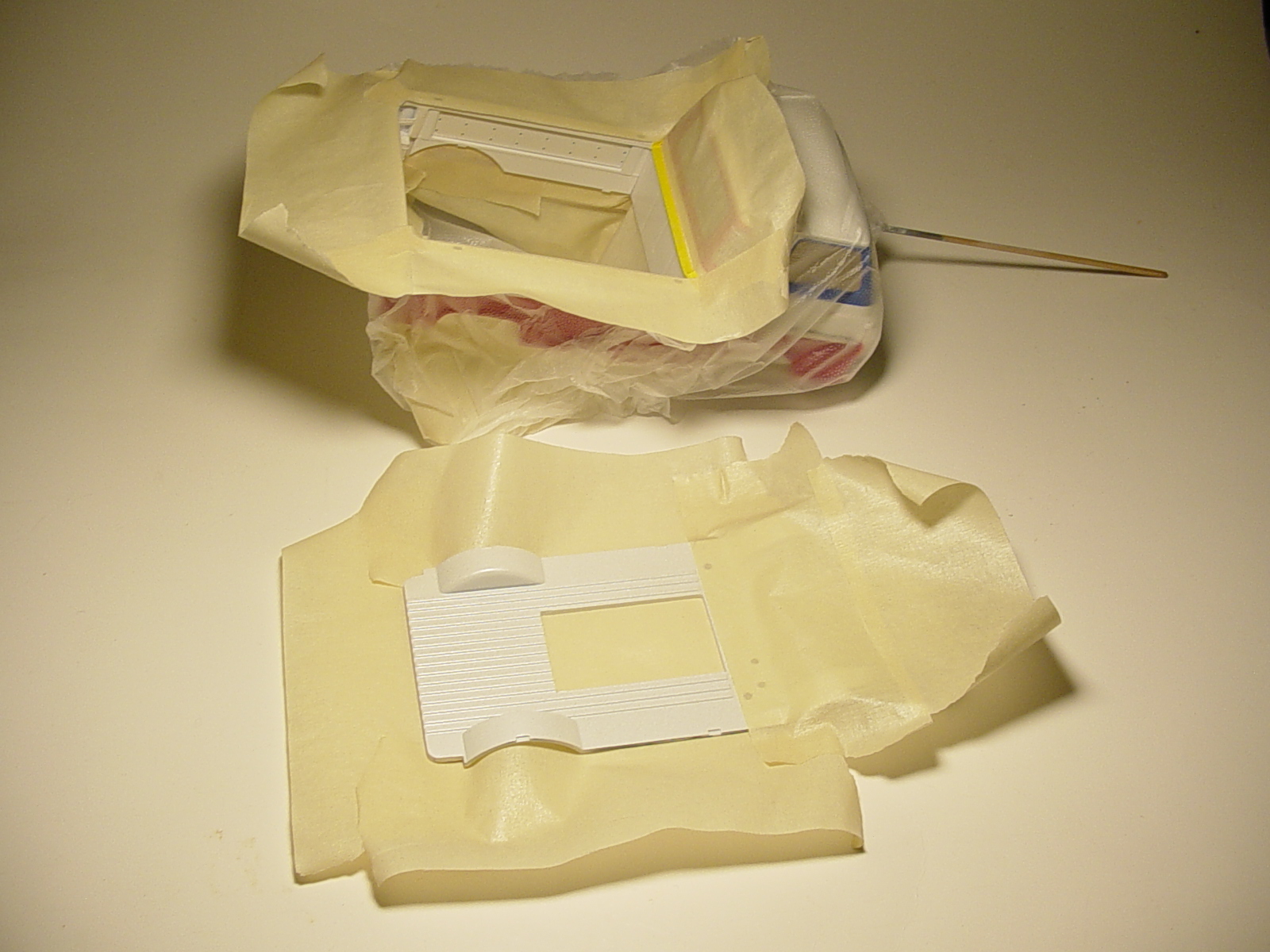 Use GLAD "Press & Seal" and masking tape to tape off body and rear of bed. (See photo 2).