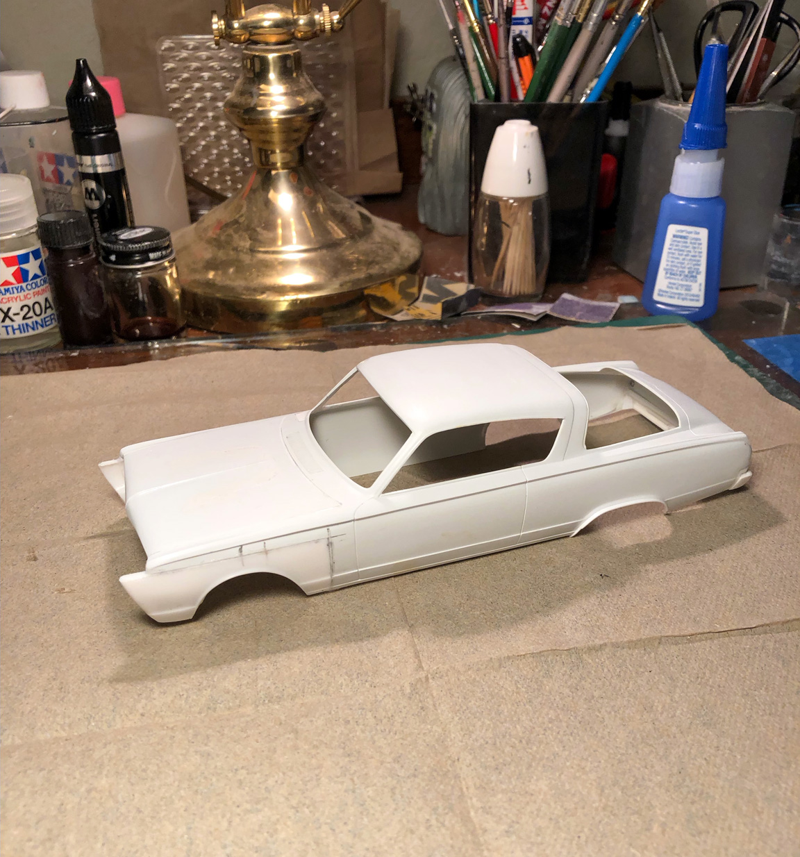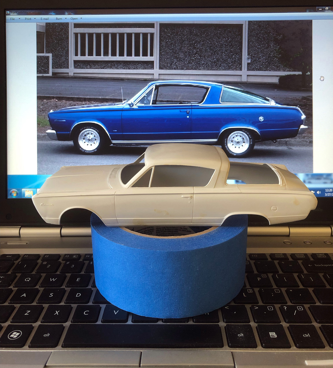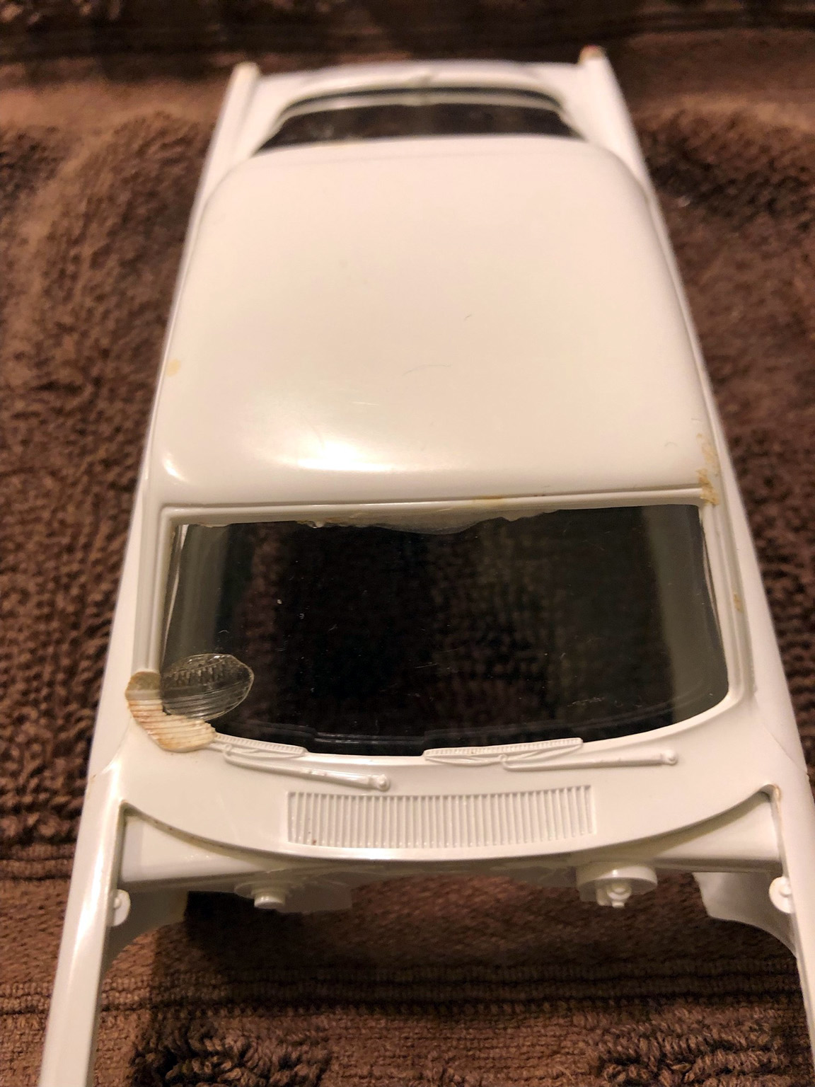 I'll be starting this project with an original AMT 1966 Plymouth Barracuda "glue bomb" built model that will need to be repaired.