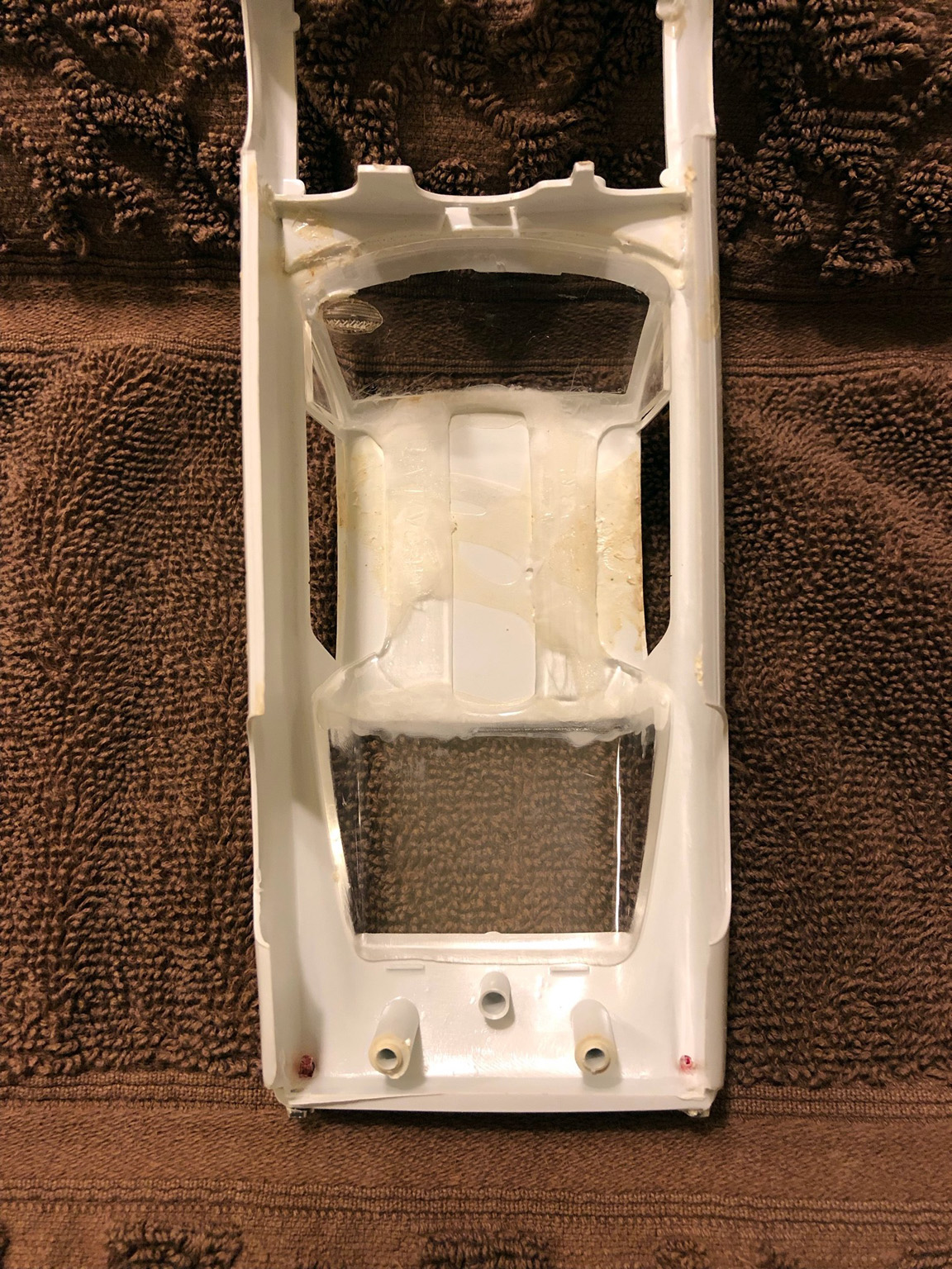With the glass removed, the cowl is very rubbery due to the vinyl tire burn over years.
