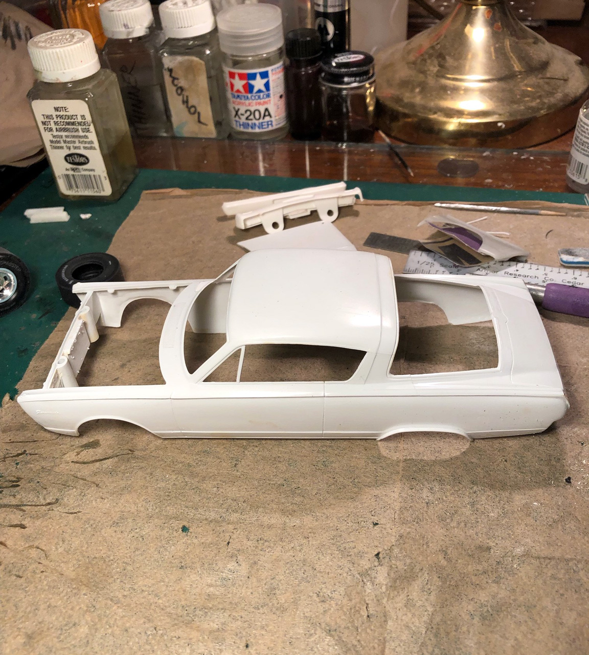 3. I found out that the wheel lips were carried over from the original AMT 1965 wheel wells (those were round) and was not corrected for the 1966 annual kit.
