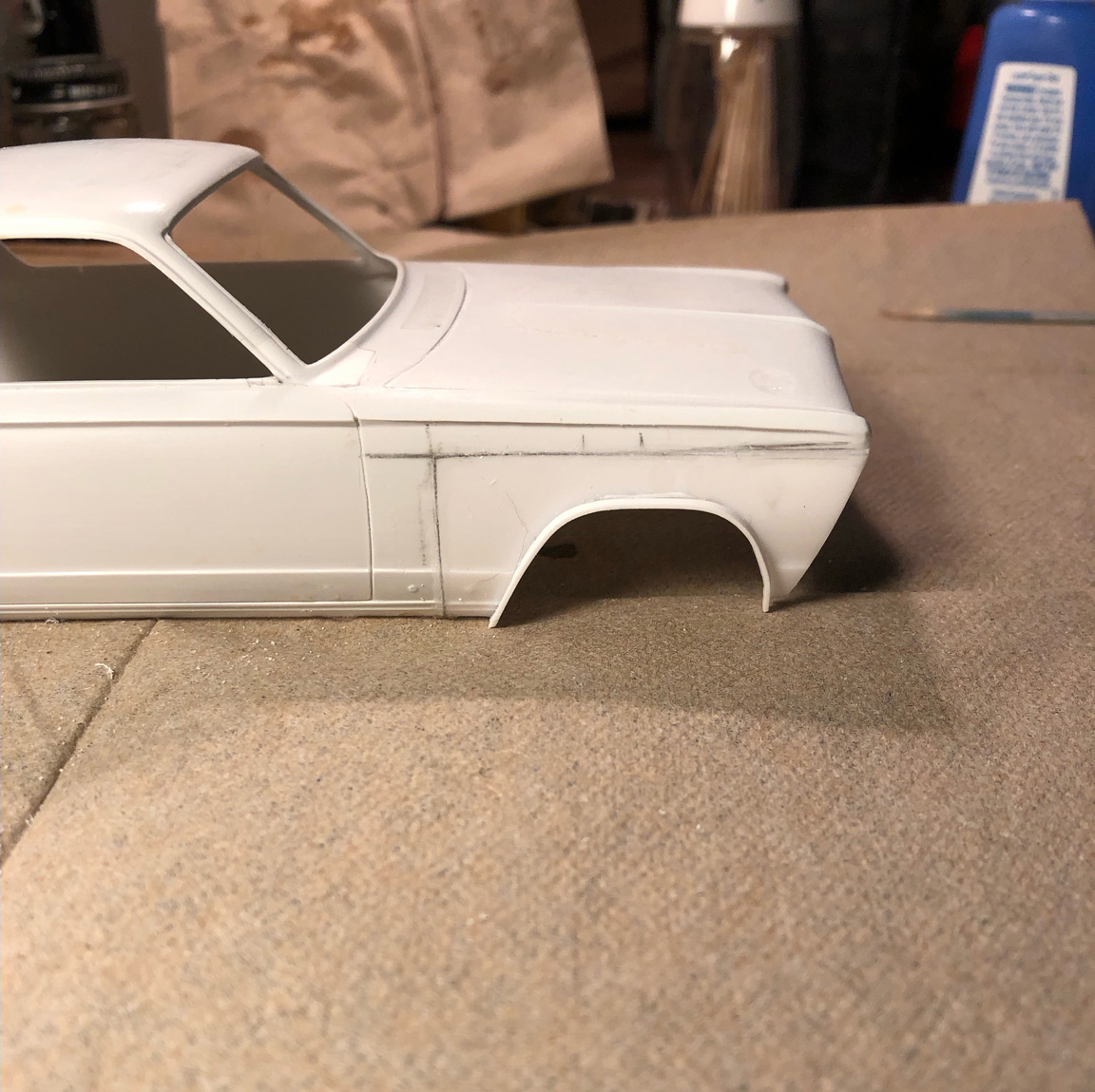 I'll need to fix this problem since the paint job & pin striping follow the curves on the '66 wheel wells.