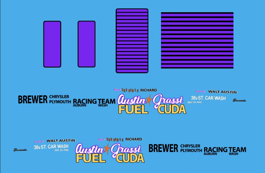 The front wheel wells are moved forward 6 scale inches using front wheel wells from a H.U.G. Barracuda.