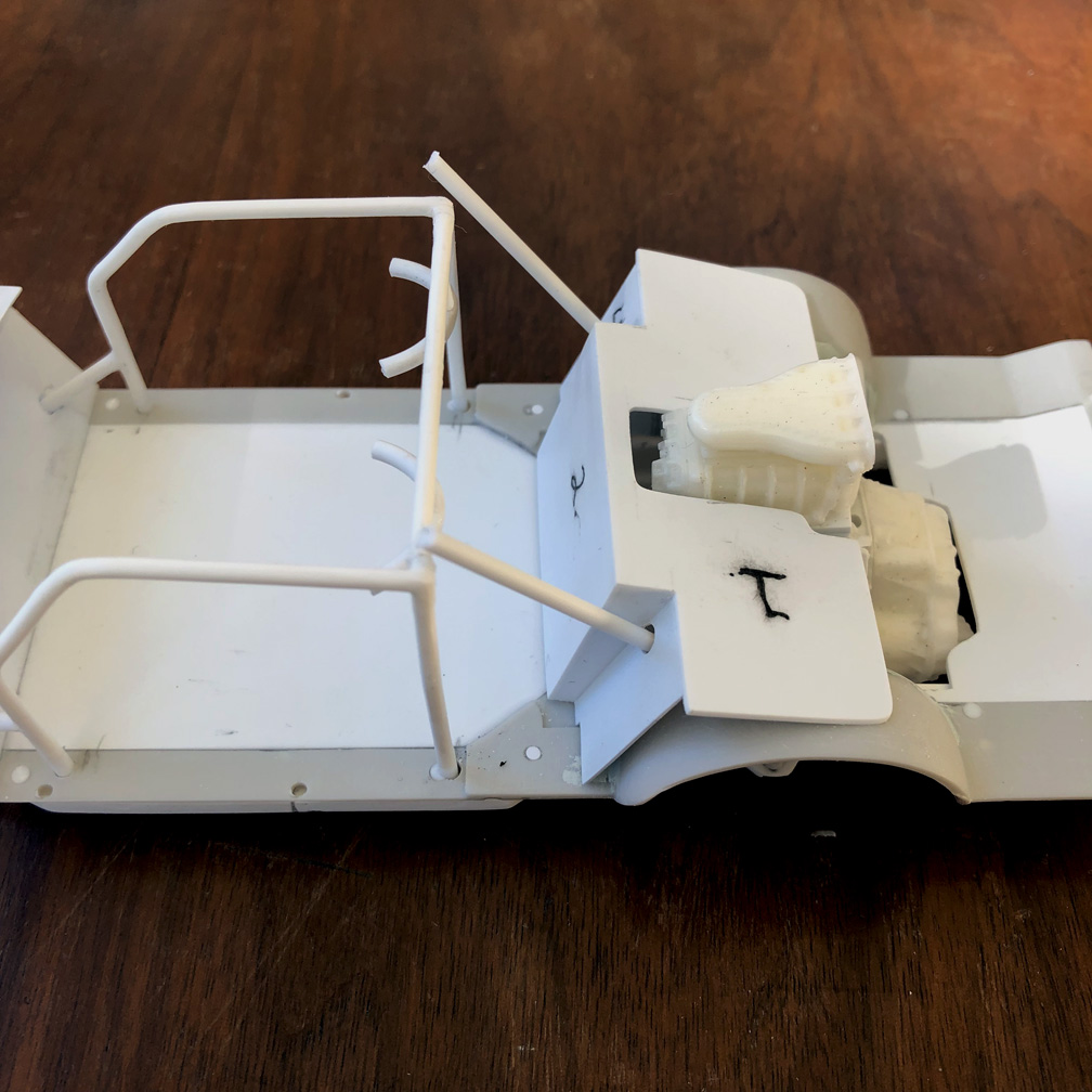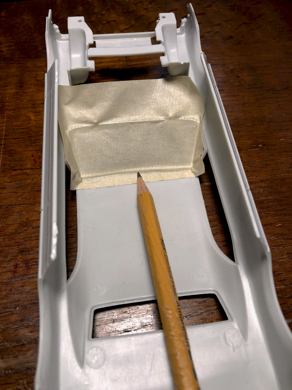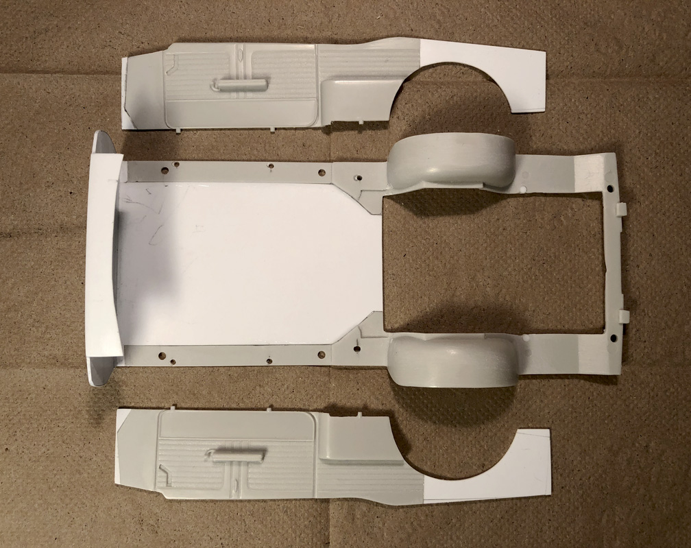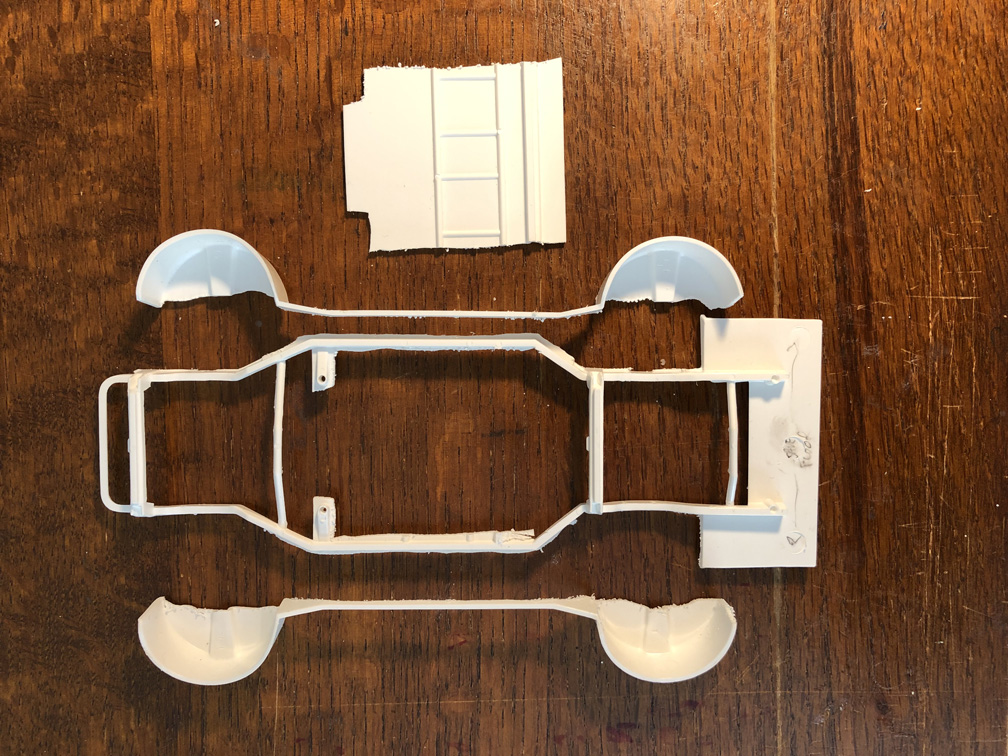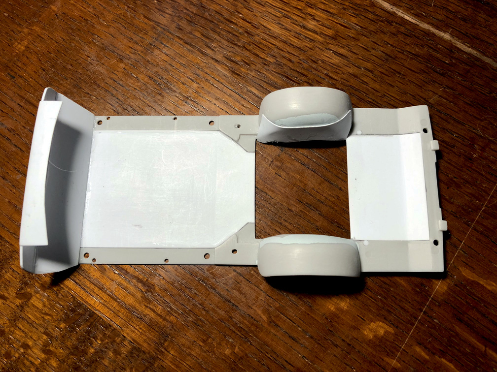 .020" strip was added around the wheel wells to meet the Monogram frame rails.