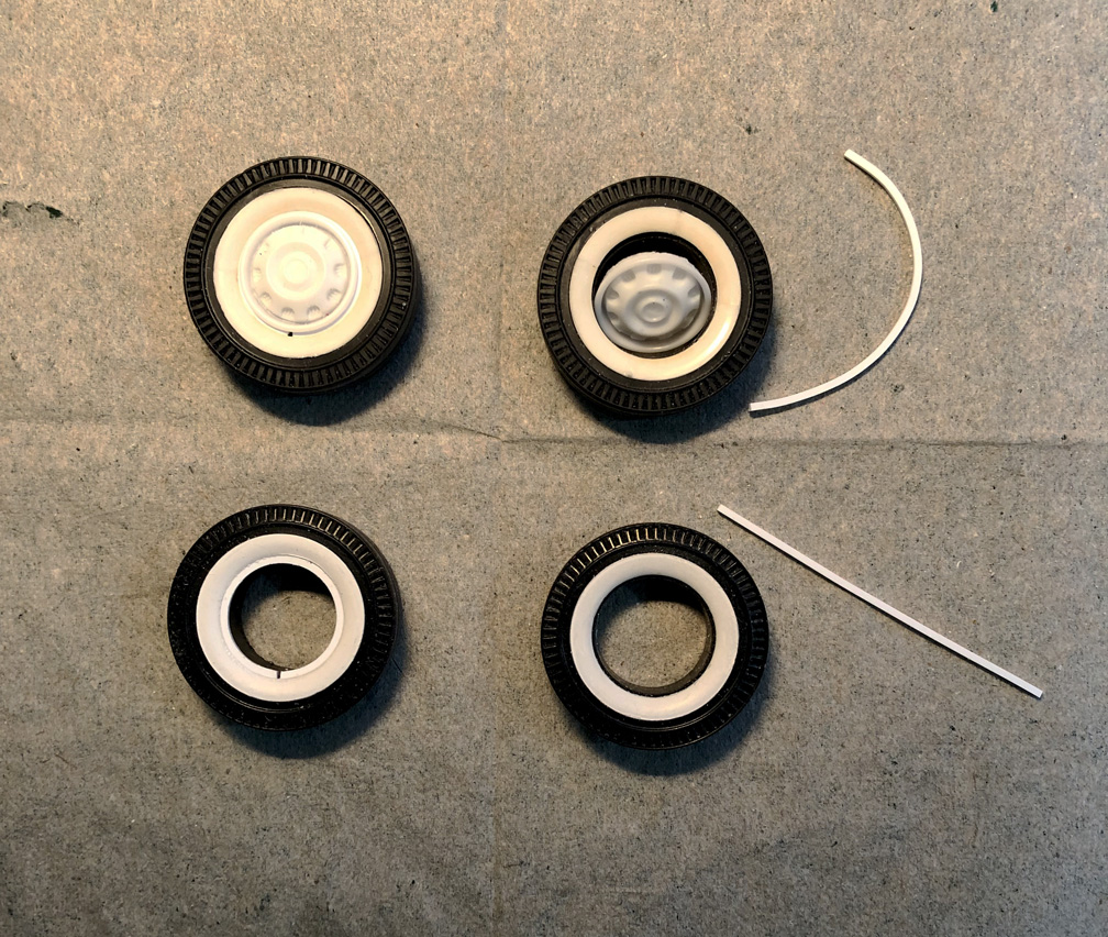 - The Monogram slicks/tires are too large for a 1/25 model, so you will need to find 2 sets of pie crust skinny slicks. (eBay is recommended).