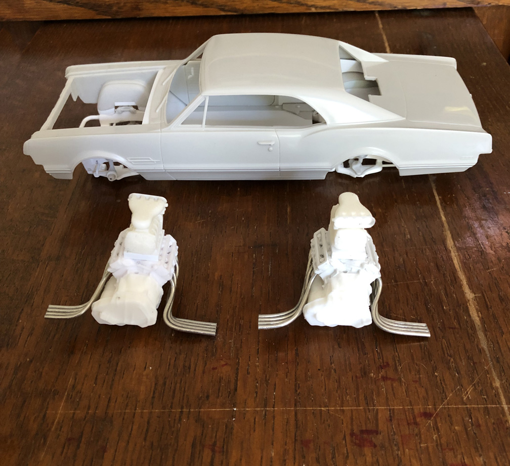 3. Monogram- Hurst Hairy Olds Twin Engine Funny Car for: Frame, F&R suspension, valve covers, seats, roll bars, center console.