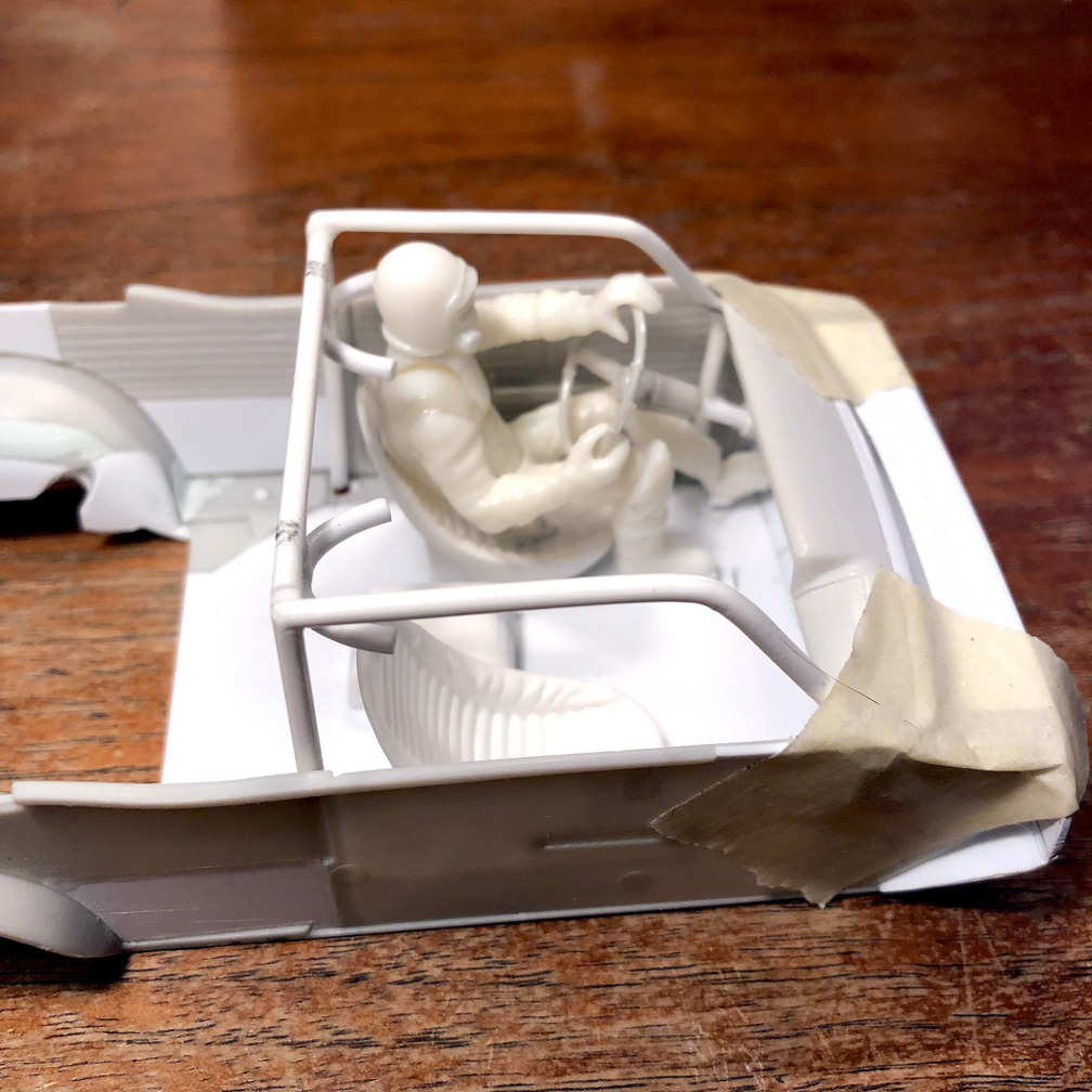Photo 1. Always start by mocking up the interior tub with the dash, steering wheel & seat before you start the figure.