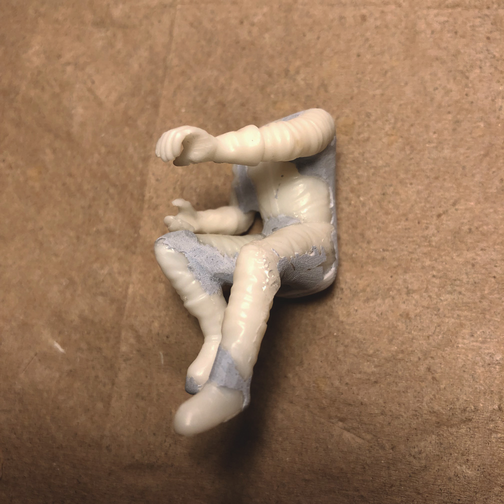 I'll be using sandpaper, sanding sticks, scraping with a hobby knife and using a round jewelers file to clean up and make new wrinkles in the fire suit.
