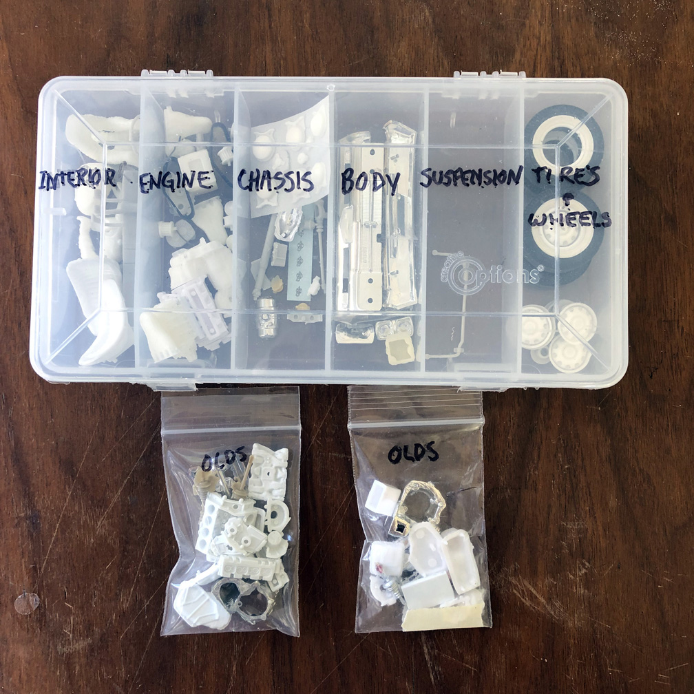 I'm taking a short cut and using 2 transaxles from the Speed City Resin 1966 Oldsmobile,