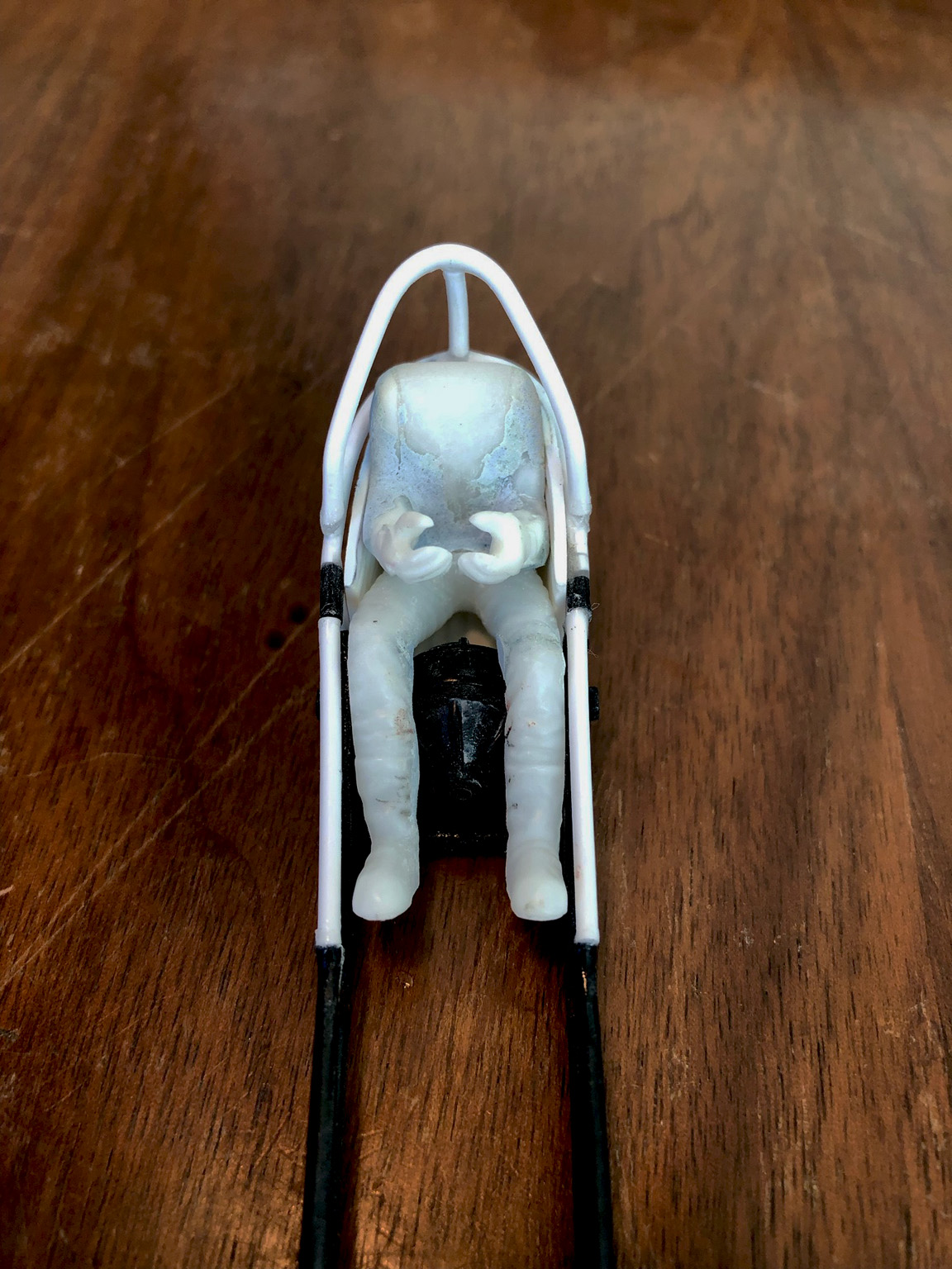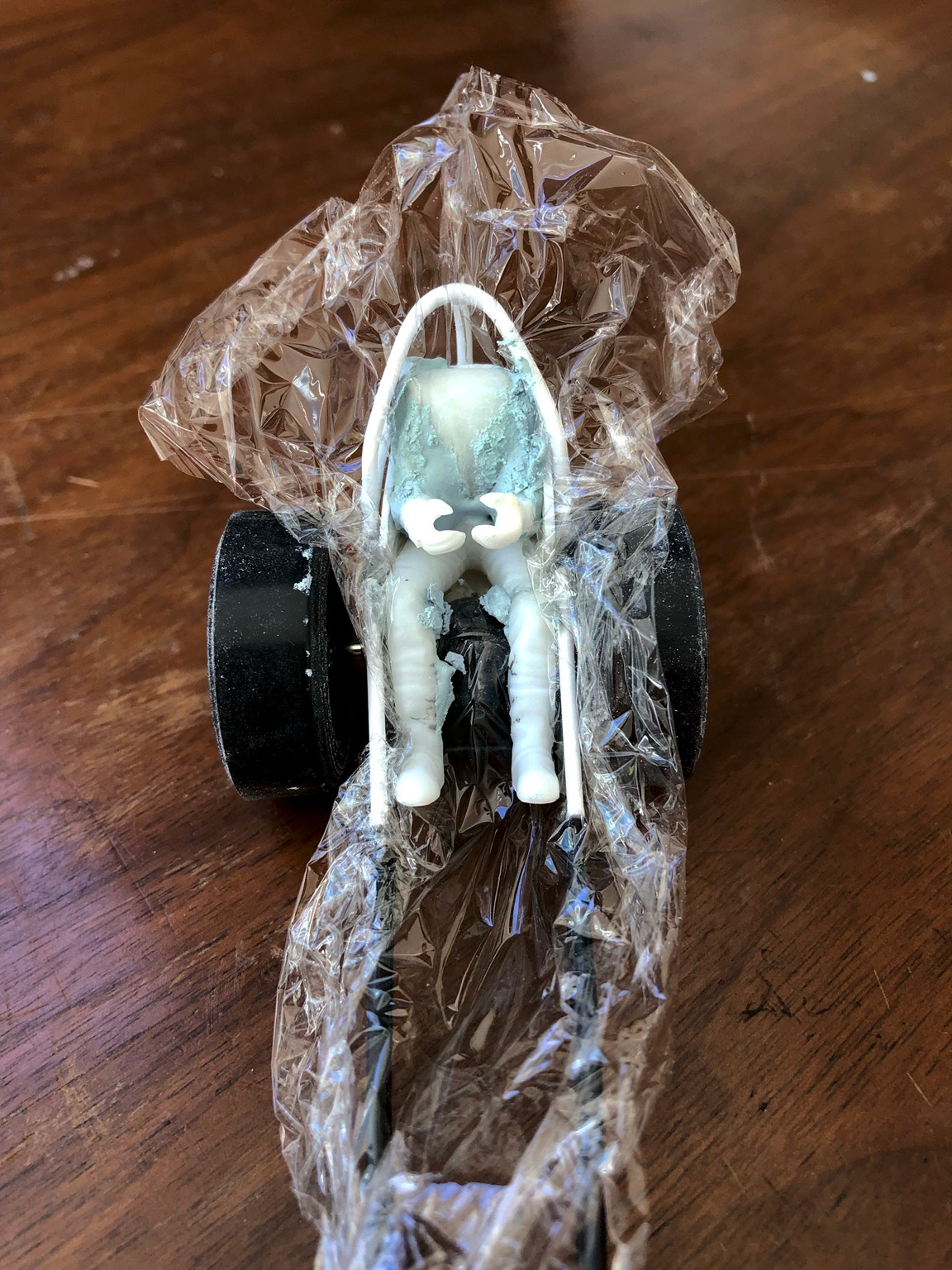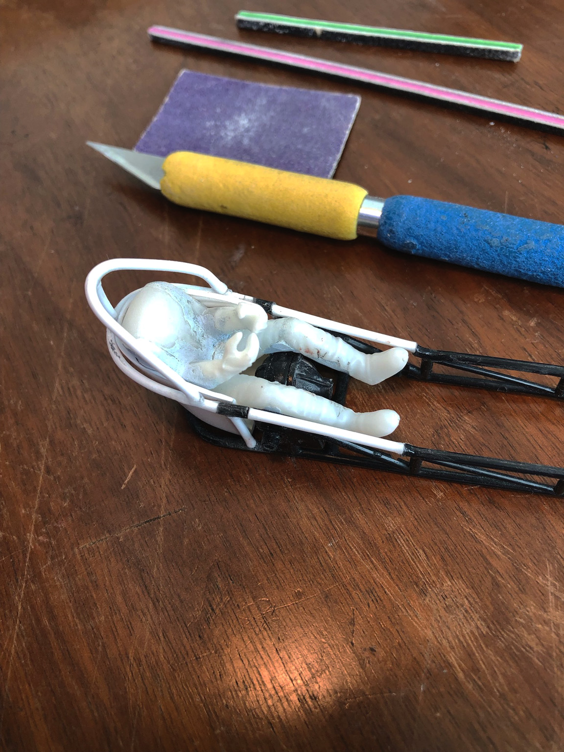 I placed Saran Wrap in the seat, then puttied up the figure and then pushed him into seat to get a perfect fit.
