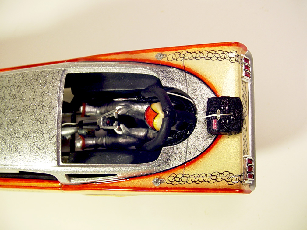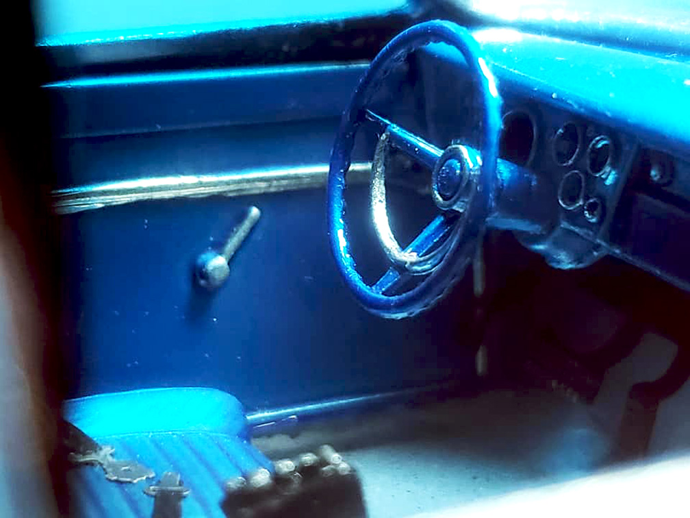 front air shocks, grill backing plate, scatter shield (made from orange silk handkerchief), water filler caps, valve stems,