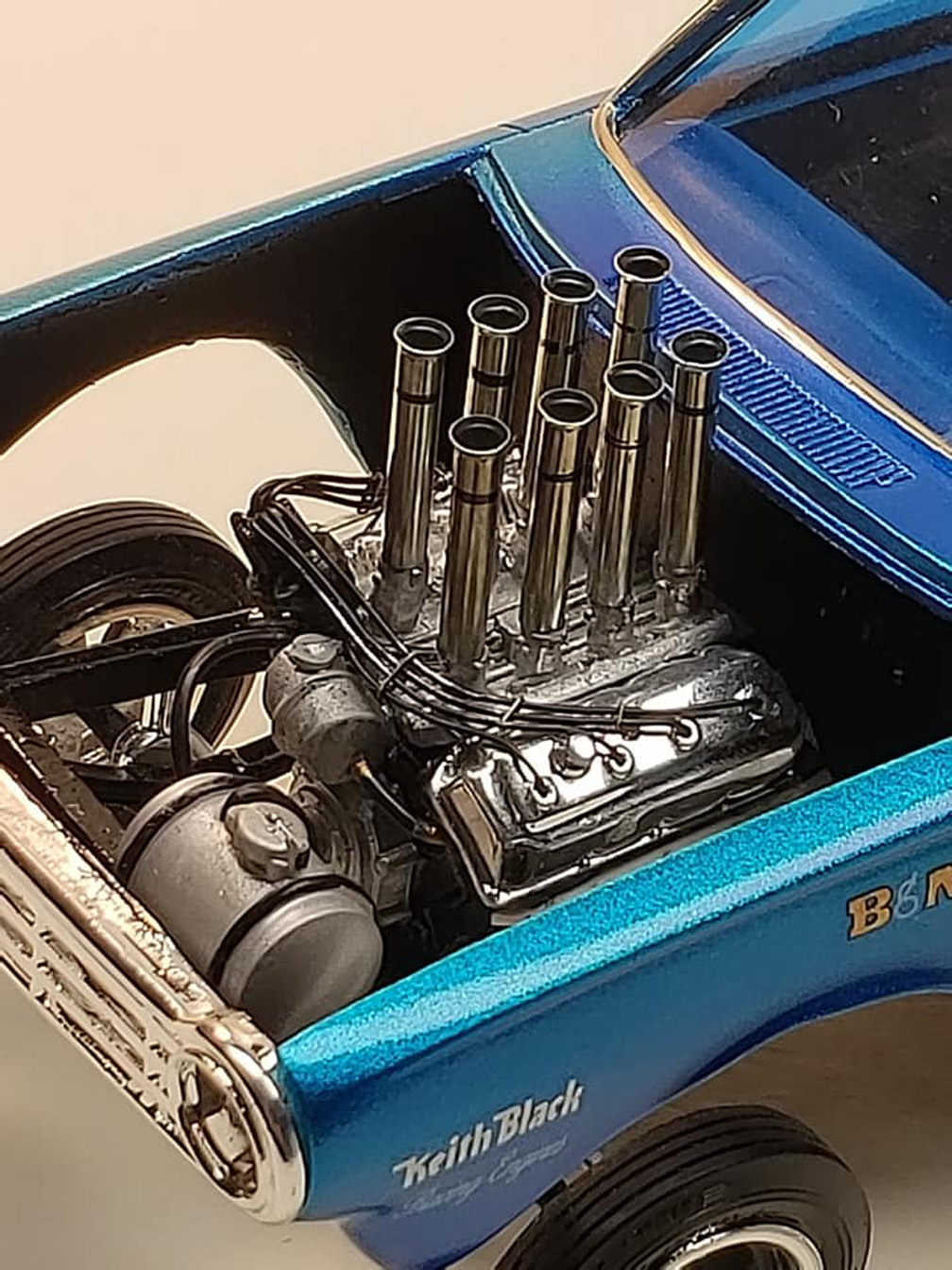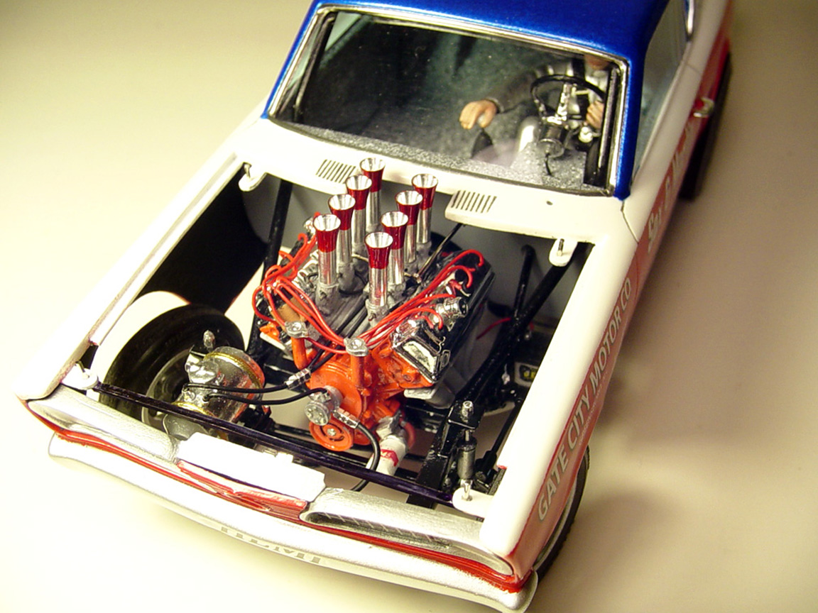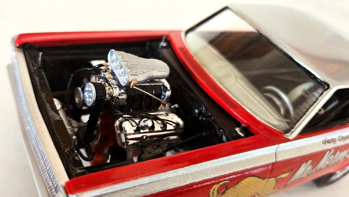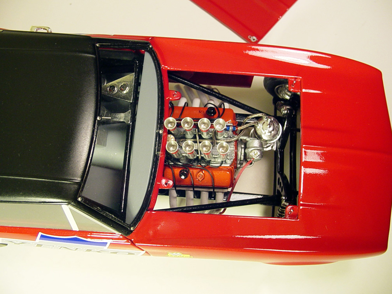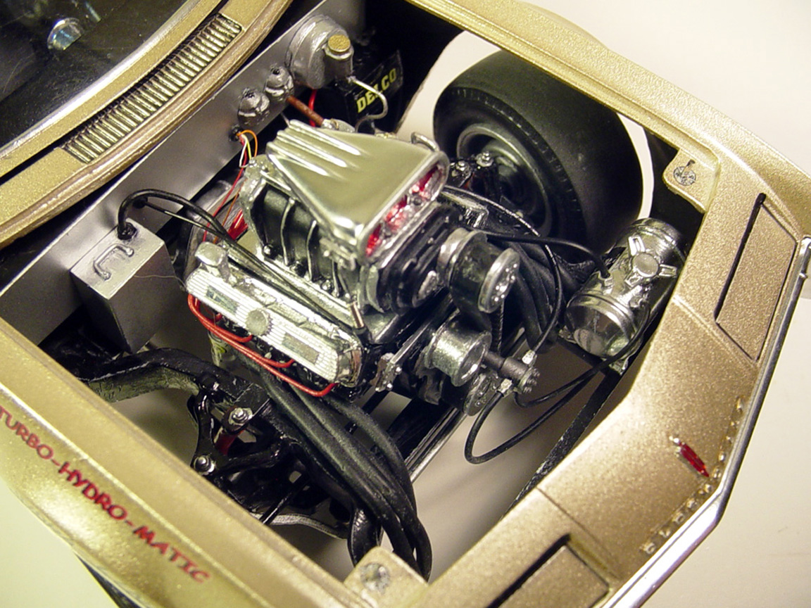 valve stems, all white 1/64" pin striping. fuel lines, plug wires, linkage, push rod,