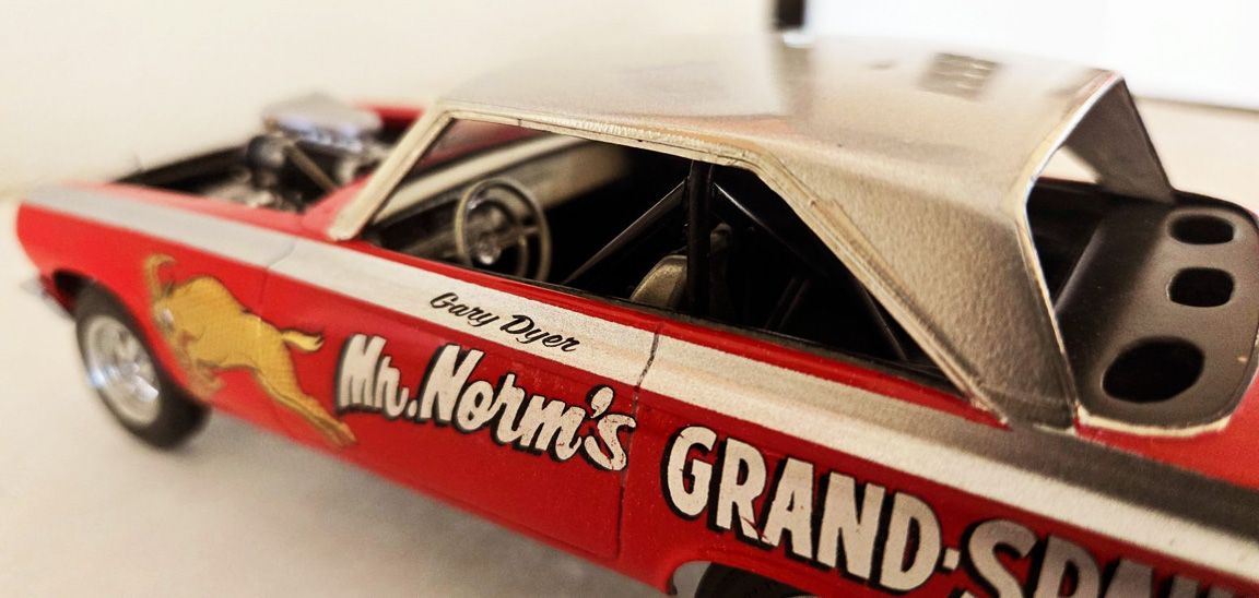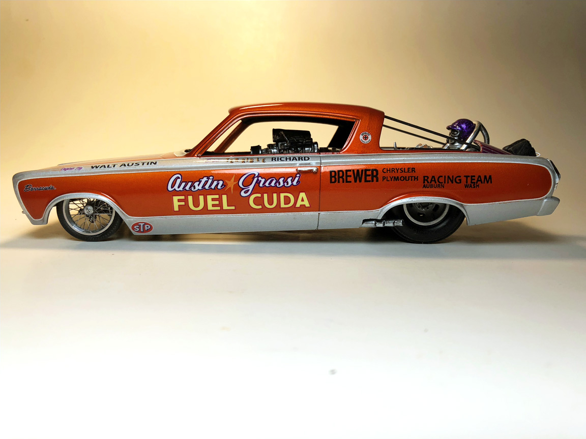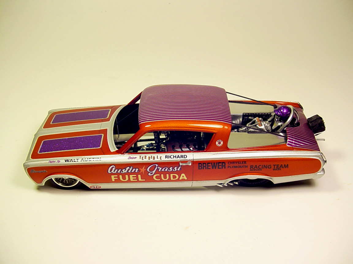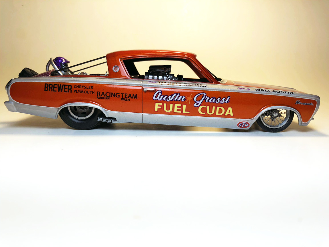 AMT Barracuda Funny Car- headers, steering wheel.