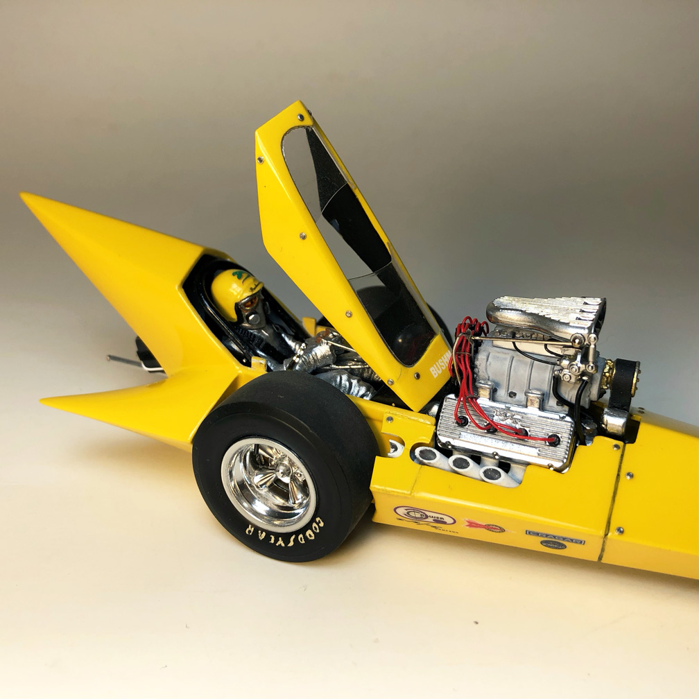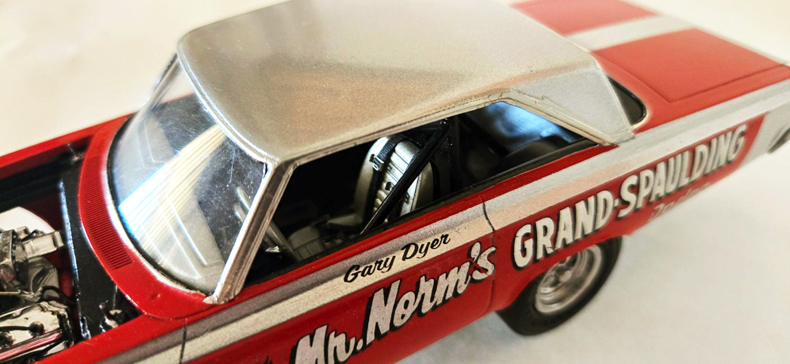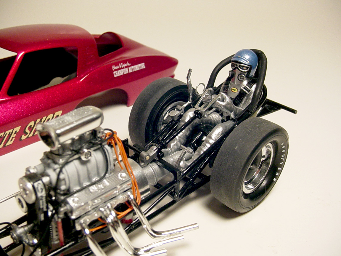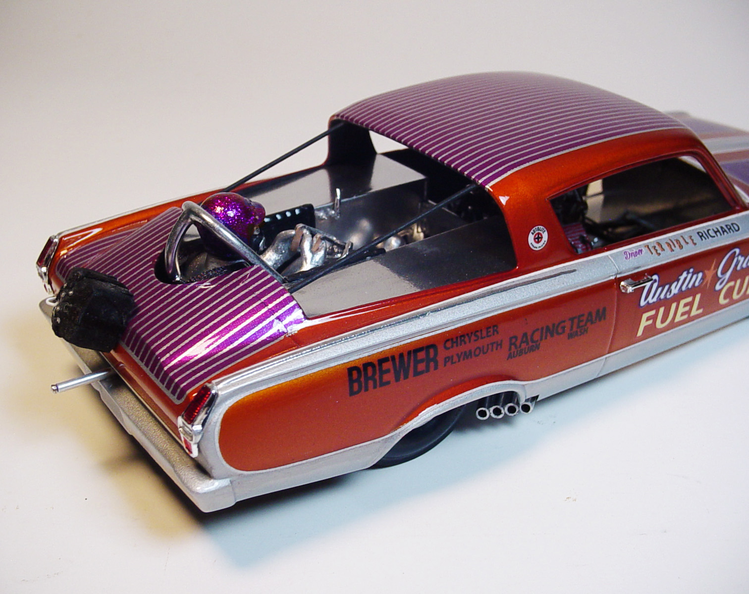 AMT Barracuda Funny Car- headers, steering wheel.