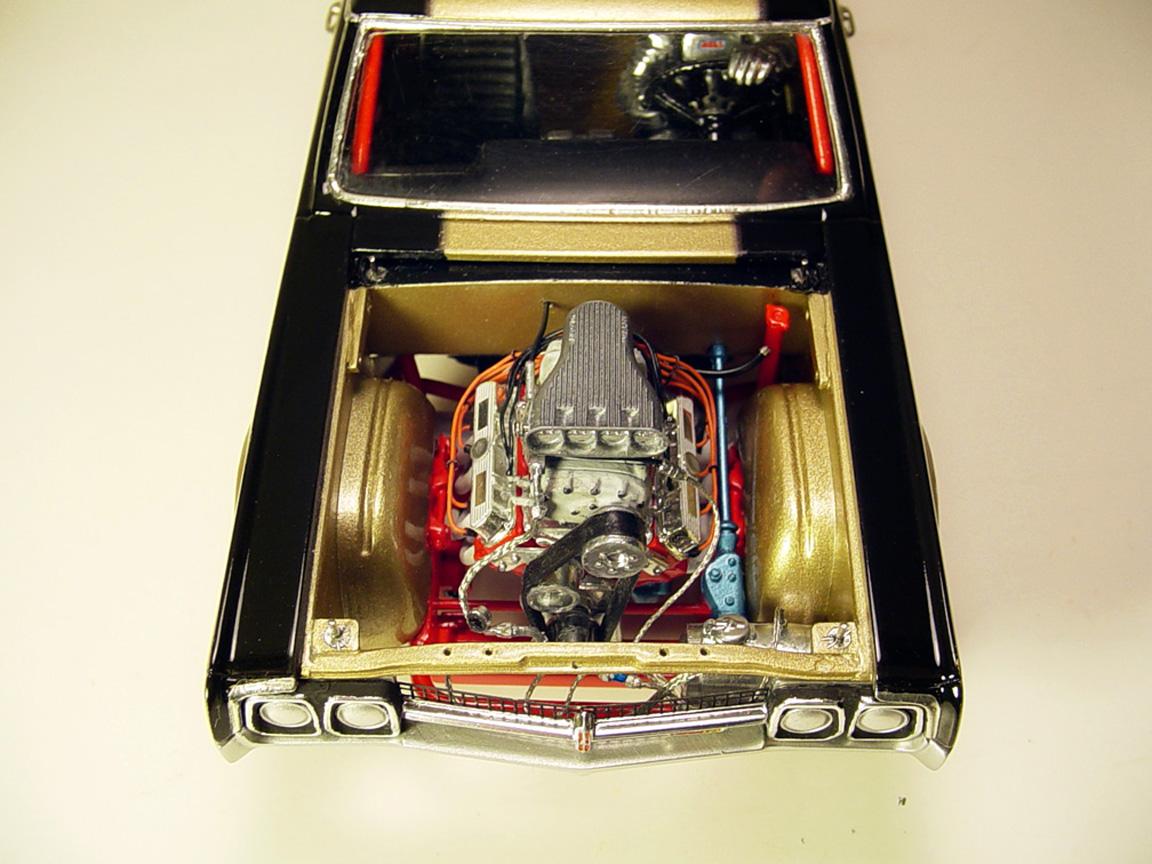 Rear wheel wells from an amt '66 Cyclone Comet were altered to fit.... along with plastic strip fillers.
