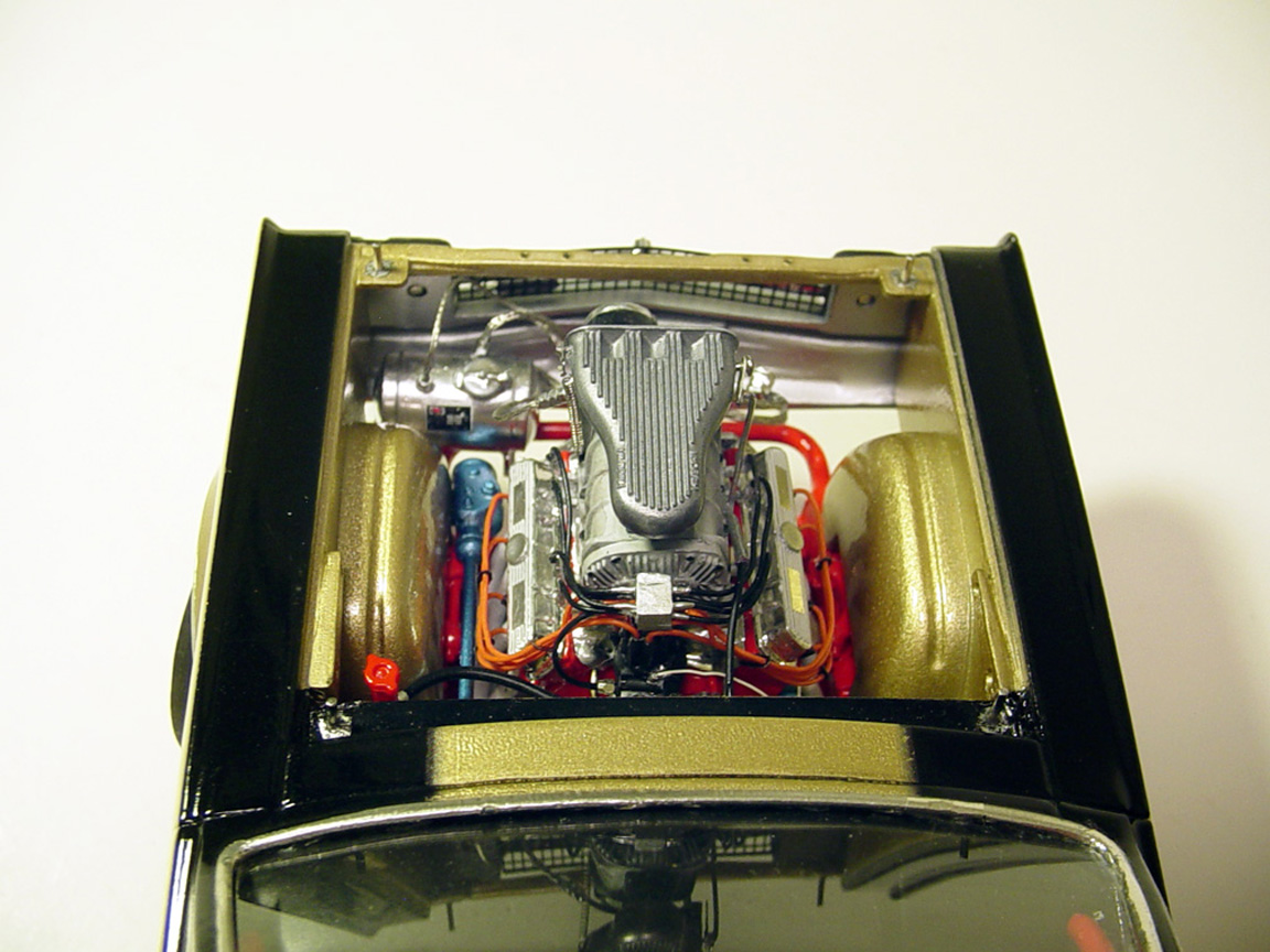 To make the body correct; 5 scale inches (5 m.m.) was removed from the fender panels and hood (see photos below).
