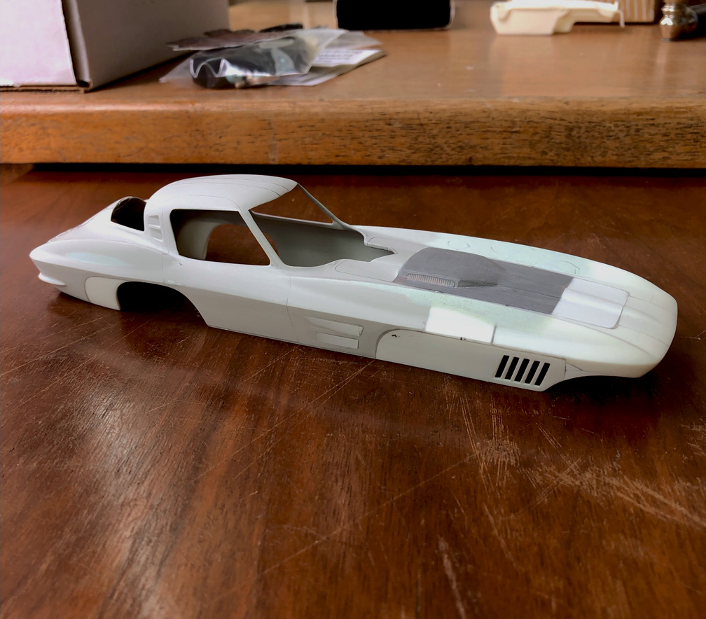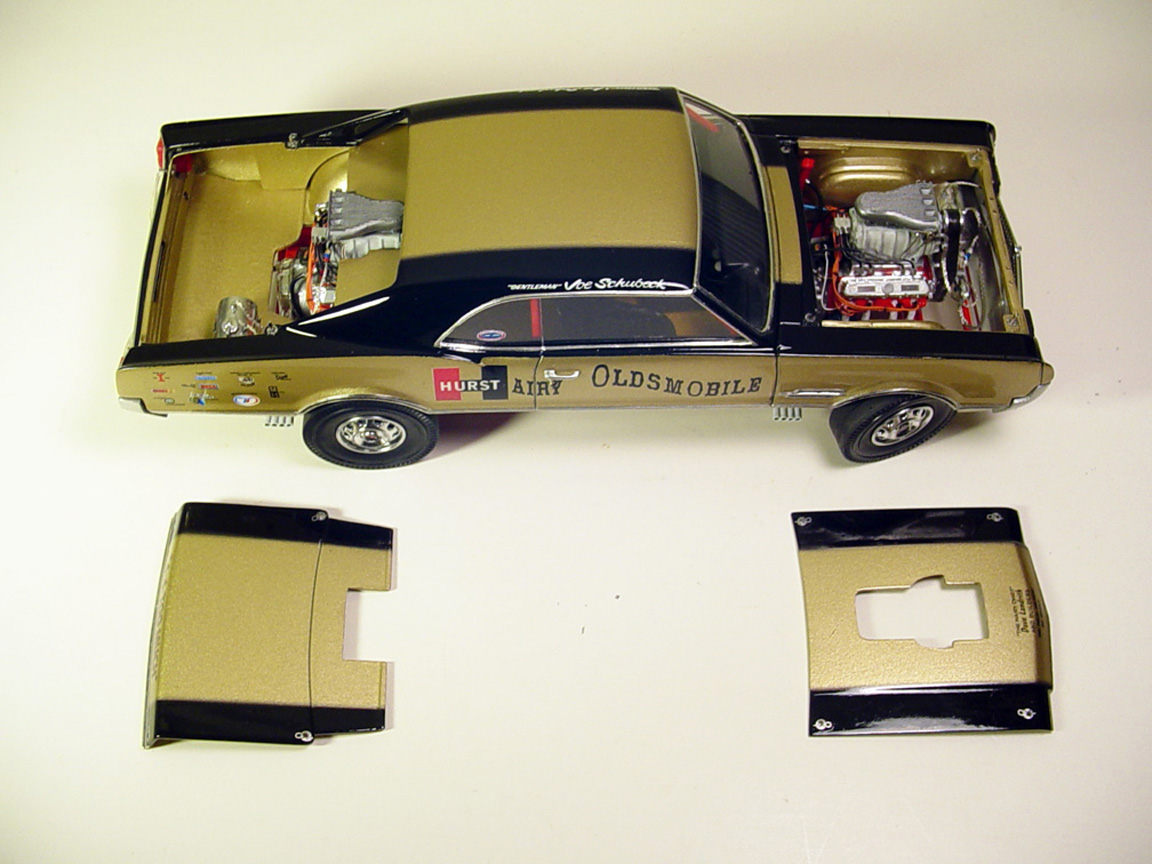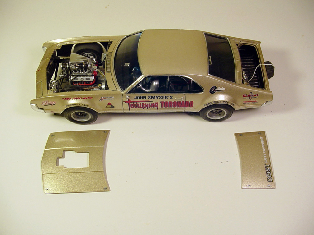 Hood made to be separate, gas cap was filled in, taillight lenses were blocked out.