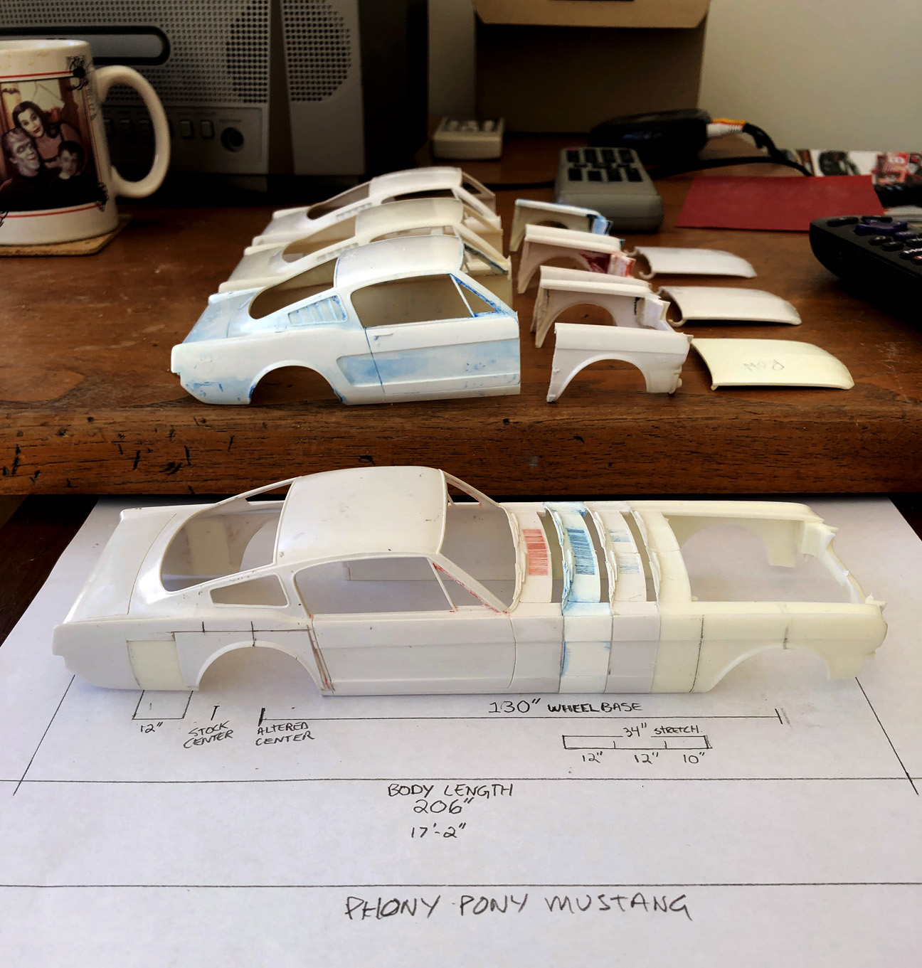 Removed 5 scale inches from fenders and hood because the article that I mastered the original master model was wrong!