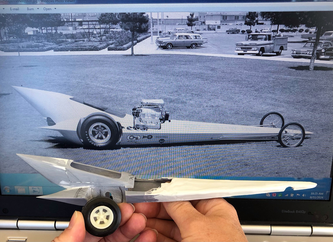 Removed 10 m.m. from an AMT Don Garlits (140") Dragster frame to be a correct 130" wheelbase.