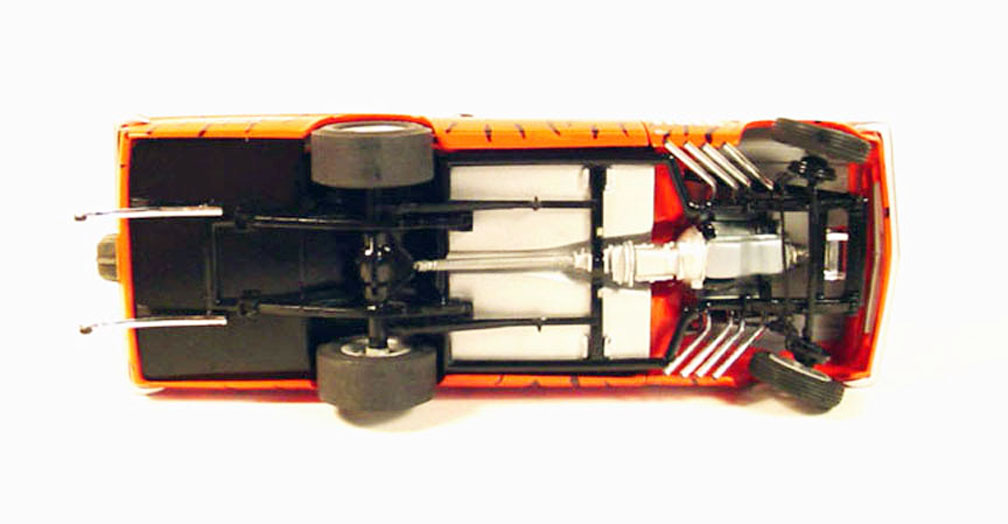 A Polar Lights F/C Chassis was shortened and rear suspension was lowered (to push up the rear end).