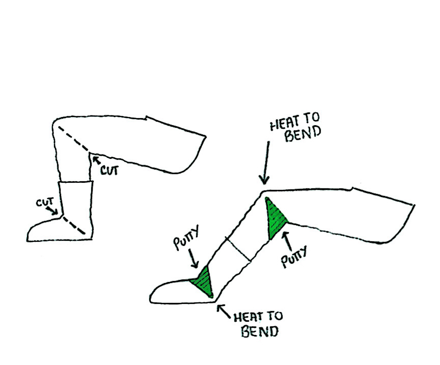 * Legs or feet can be re-angled by heating parts and bent to fit location needs.